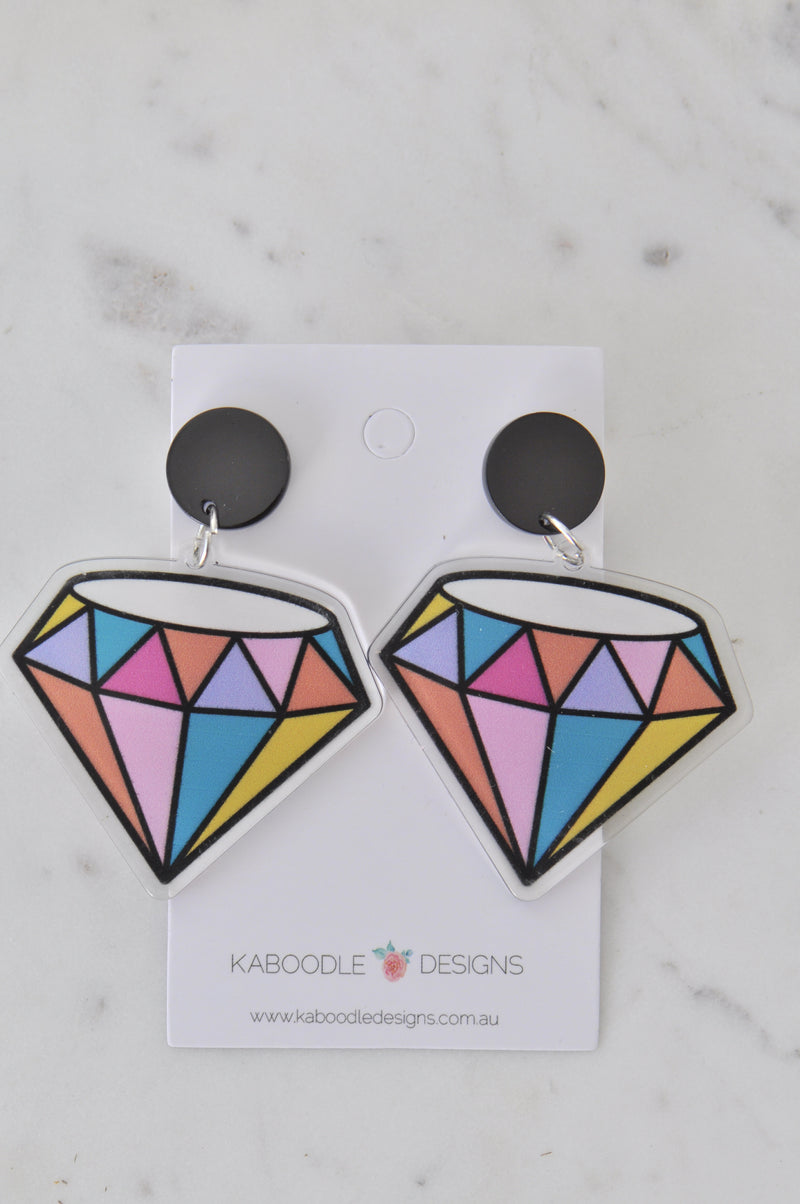 Acrylic Geometric Rainbow Diamond Drop Dangle Earrings