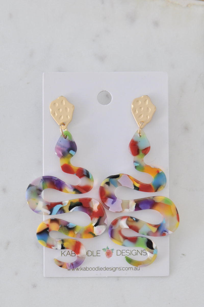 Acrylic Perspex Geometric Swirl Rainbow Acetate Snake Dangle Drop Earrings