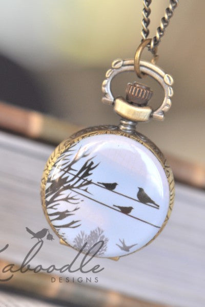 Birds on a Line - Small Pocket Watch Necklace