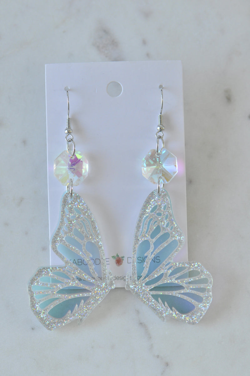 Acrylic Butterfly Wings Rhinestone Concert Drop Dangle Earrings