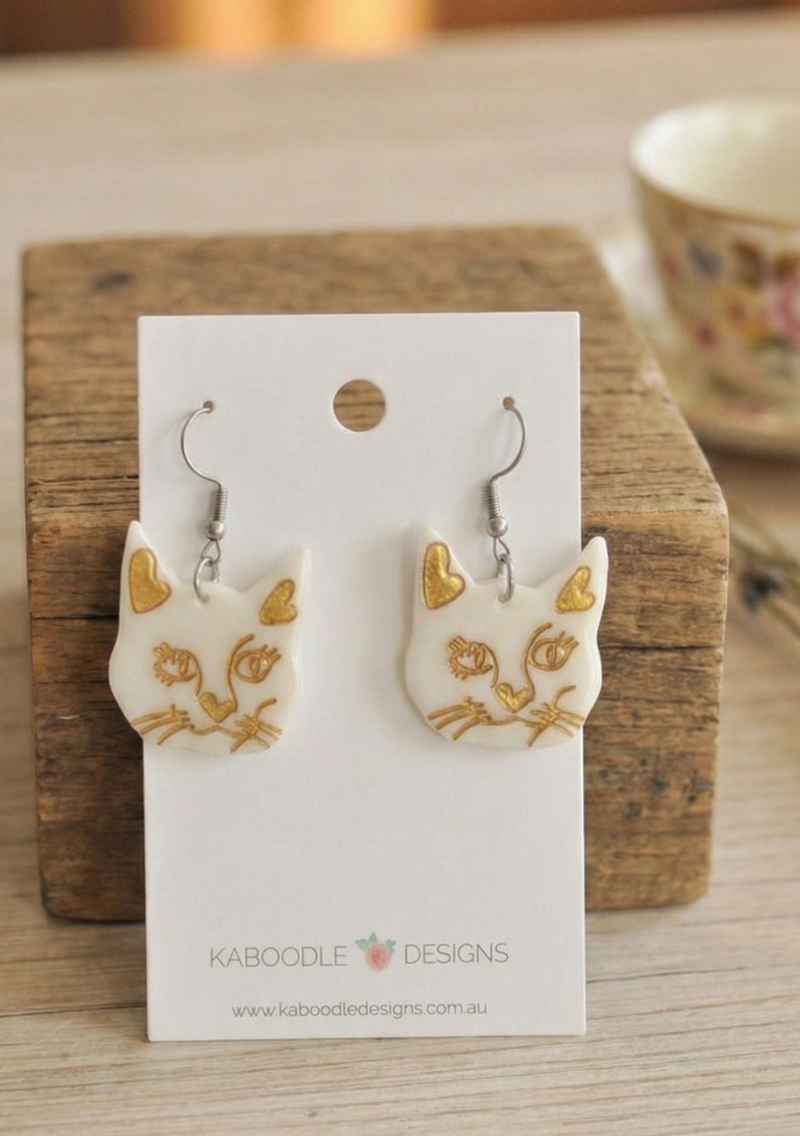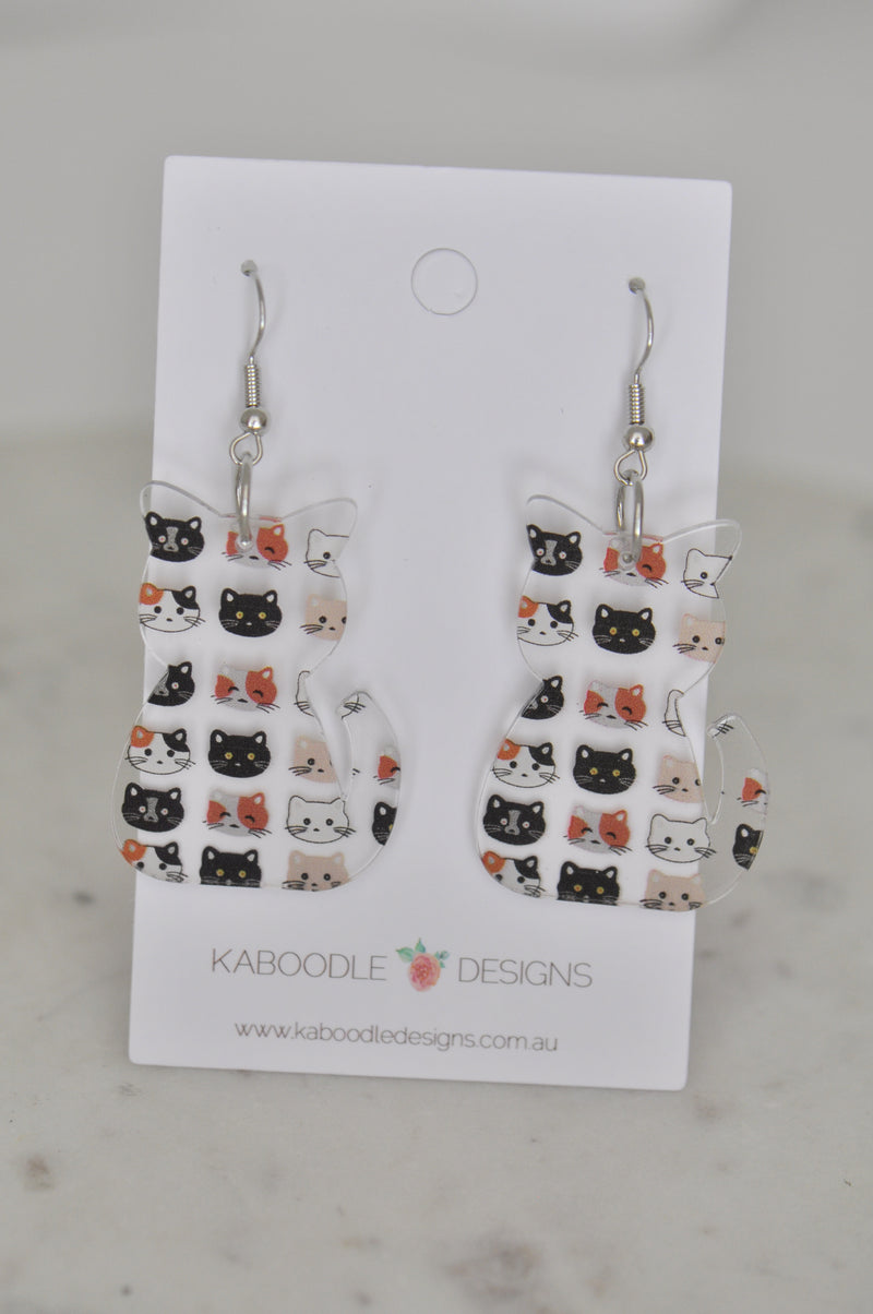 Acrylic Cat Face Kitten Kitty Drop Earrings