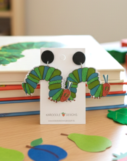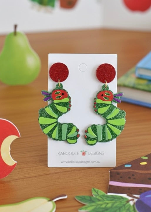 Acrylic Caterpillar Glitter Drop Dangle Earrings