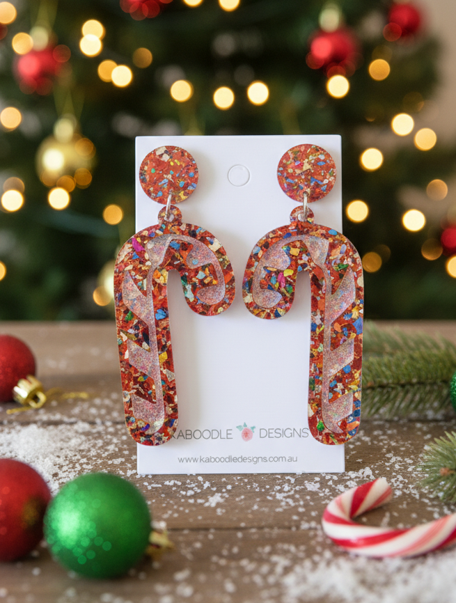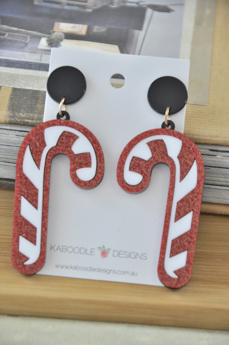 Acrylic Christmas Candy Cane Xmas Drop Earrings