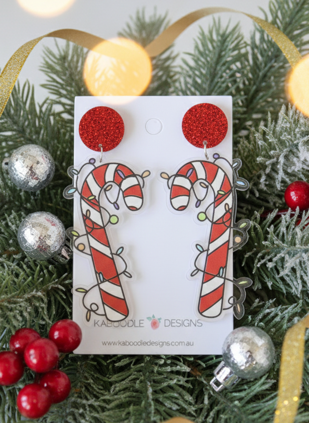Acrylic Christmas Candy Cane Xmas Lights Drop Earrings