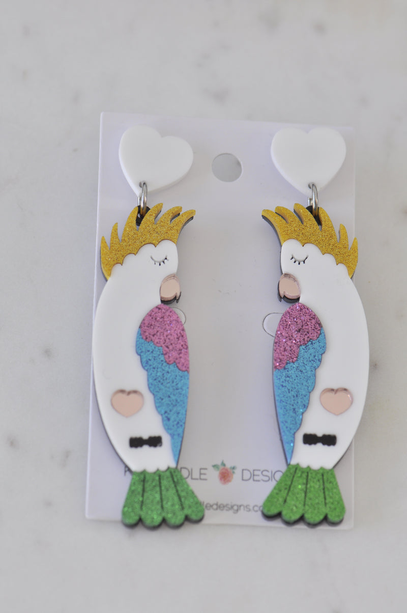 Acrylic Glitter Cockatoo Drop Dangle Earrings