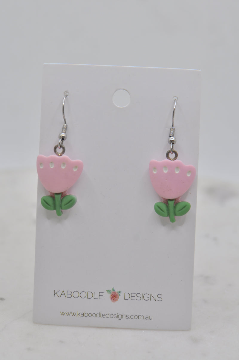 Tulip Flower Drop Dangle Earrings - Pink