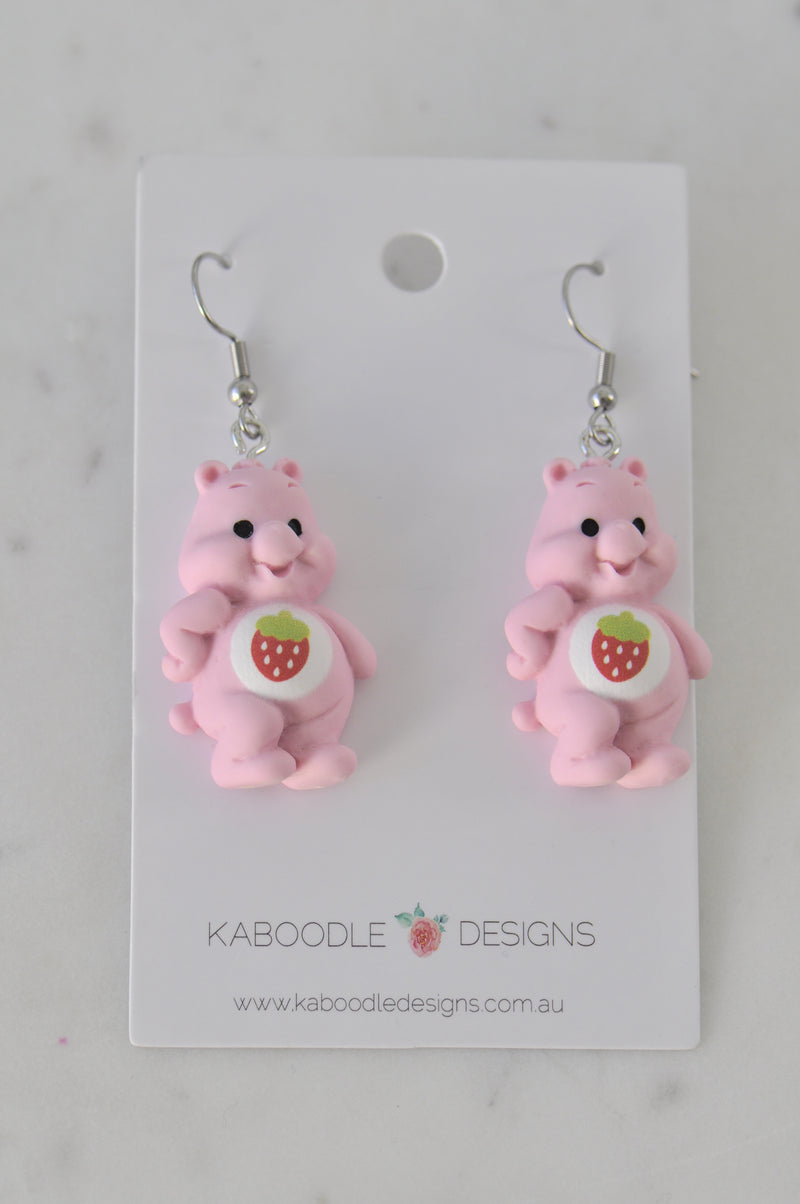 Teddy Bear Drop Dangle Earrings - Pastel Pink
