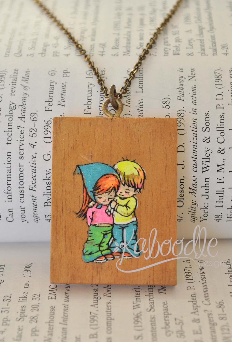 Wooden Moppet Necklace - Love is Caring - Rare Find