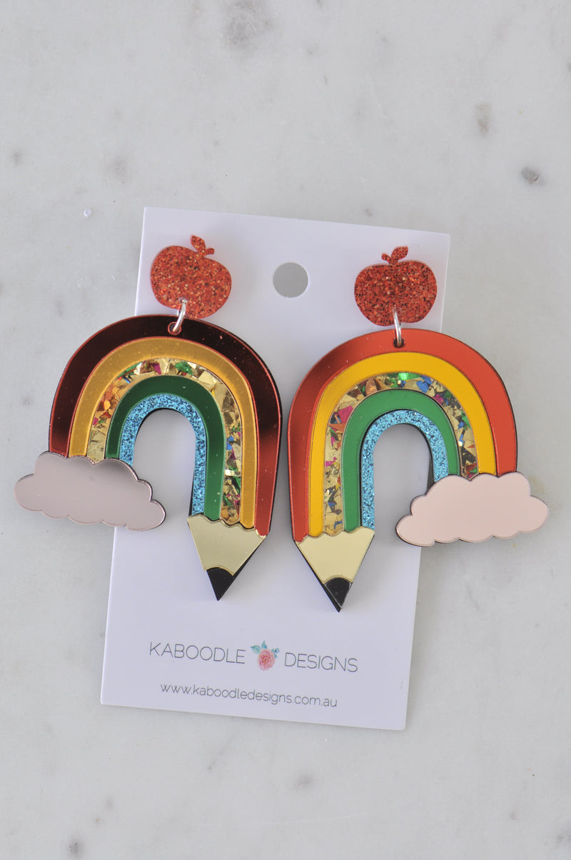 Acrylic Rainbow Pencil Cloud Pencil Apple Teachers Drop Dangle Earrings
